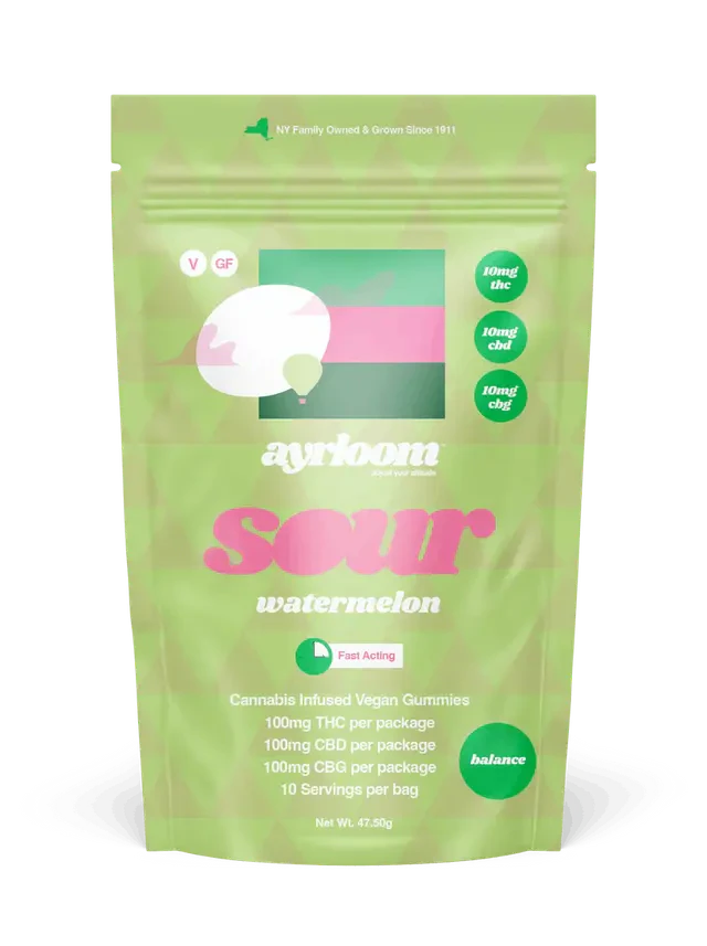 Enjoy a burst of summer for your taste buds during any season. Ayrloom's Sour Watermelon Gummies bring you the perfect balance of THC, CBD, and CBG for any occasion.