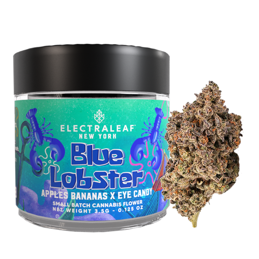 Blue lobster is an indica-dominant hybrid born from the potent lineage of Eye Candy and Apples and Bananas. Eye Candy, a cross of Biscotti and The Menthol, is known for its minty, premium GSC aroma and effects that induce happiness, creativity, and euphoria. Apples and Bananas, an evenly balanced hybrid, boasts a sweet and fruity flavor profile with a touch of spice and delivers a powerful high that combines euphoria with deep relaxation.