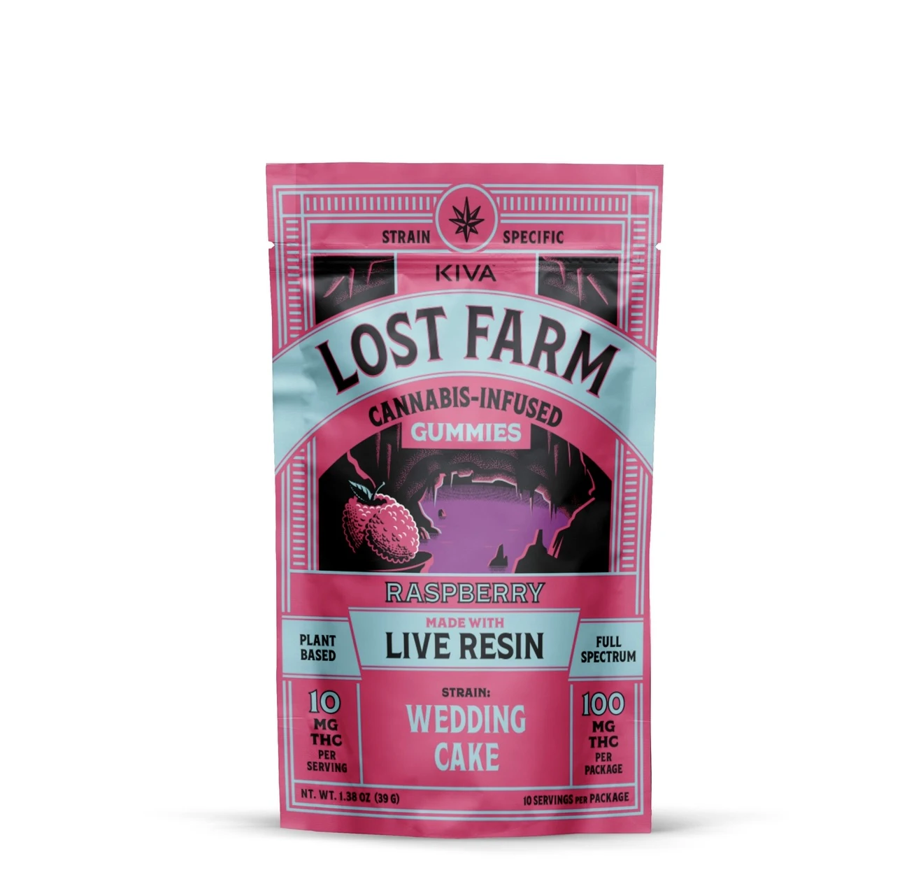 The tart, fruity, and vanilla aromas of the Wedding Cake strain give character to this gummy’s sweet, bright berry flavors.